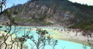 Journey south of Bandung into the cool highlands, and you’ll discover Kawah Putih—the White Crater—a