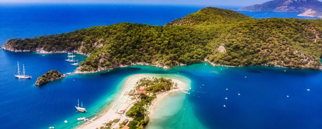 Ölüdeniz, meaning “Dead Sea” in Turkish, is a breathtaking coastal resort village near Fethiye on Turkey’s Turquoise Coast. Its fame rests on the Blue Lagoon, a stunning, calm inlet sheltered by a narrow spit of land from the main Mediterranean Sea. The lagoon’s water is famous for its vivid, crystal-clear turquoise and aquamarine hues, and it is protected as a national nature reserve.