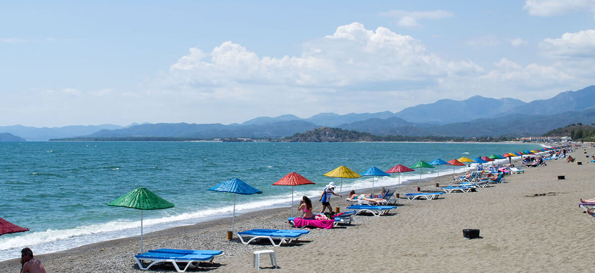 Calis Beach, situated just west of Fethiye on Turkey’s Mediterranean coast, is a popular, sprawling stretch known for its relaxed, friendly atmosphere. Stretching for about 4 kilometers, the shore is primarily composed of shingle and pebbles, though some areas feature dark sand. It’s an accessible public beach with plenty of amenities lining the long promenade, including numerous cafes, restaurants, and shops catering to both tourists and locals.