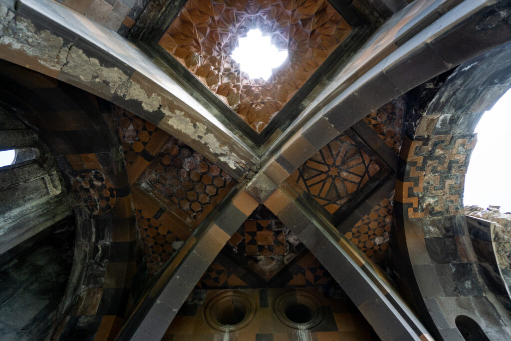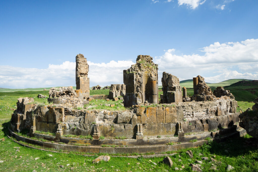 Often called the “City of 1,001 Churches,” Ani is characterized by its impressive collection of religious, military, and civil structures built from local volcanic tuff stone, showcasing a unique “Ani school” of Armenian architecture. Key monuments include the grand Cathedral of Ani (Fethiye Mosque) and the Mosque of Minuchihr, noted as one of the earliest Seljuk mosques in Anatolia.