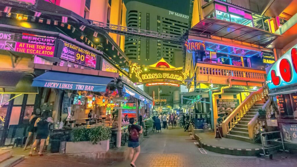 The area offers a blend of experiences, from high-end hotels and modern eateries on Sukhumvit Soi 11 to budget-friendly accommodations and lively street food stalls. Its excellent transportation links make it a convenient base for exploring other parts of Bangkok, including nearby attractions like the shopping malls at Asok (Terminal 21) and Phrom Phong (EmQuartier). Nana provides an energetic, 24/7 microcosm of Bangkok’s cosmopolitan and fast-paced urban life.