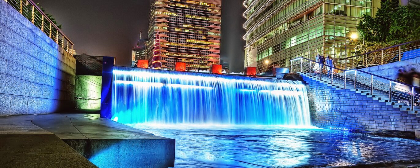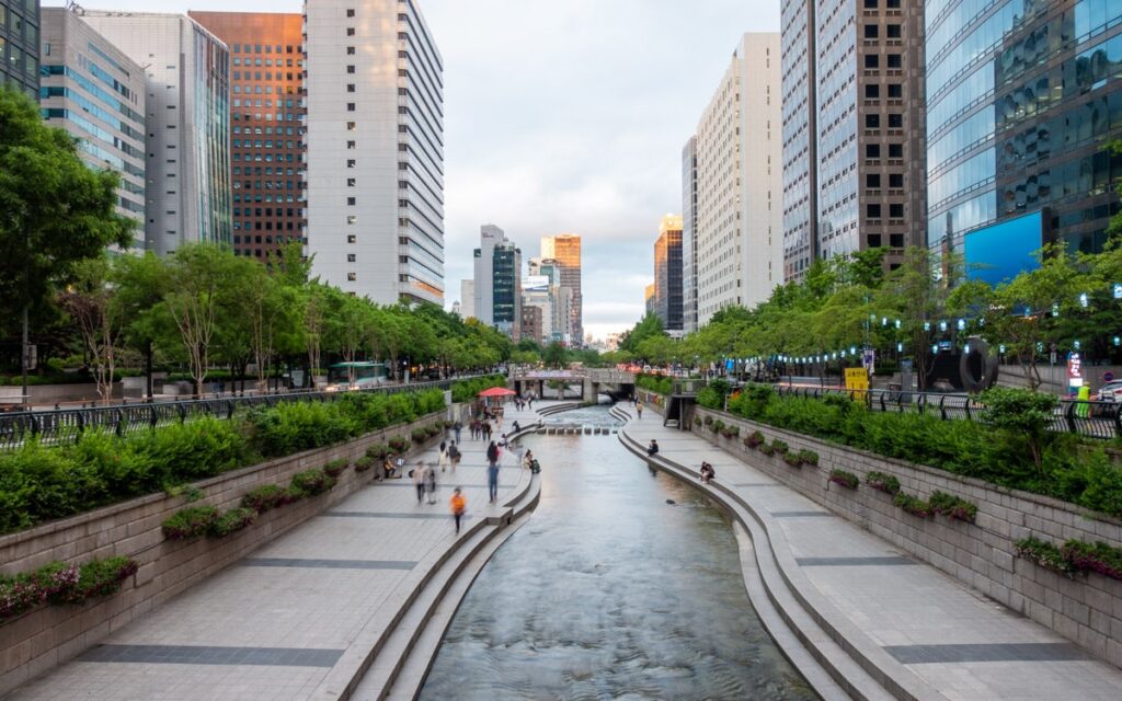 Cheonggyecheon (Clear Valley Stream) is an 11-kilometer-long public space and restored stream flowing through downtown Seoul, South Korea. Its significance lies in representing a massive, successful urban renewal and ecological restoration project.