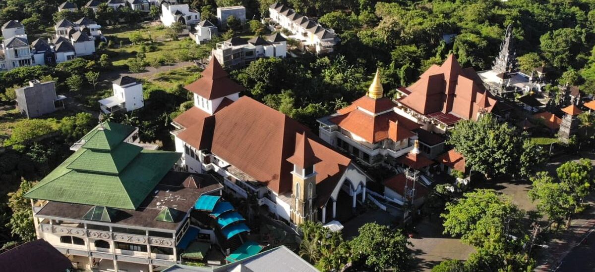 Tucked away in a tranquil 2-hectare compound, the site features five distinct places of worship standing side-by-side without borders, representing five of Indonesia’s major recognized religions: