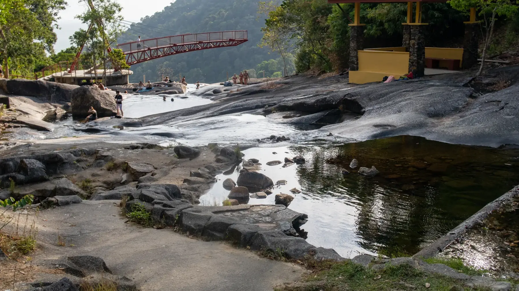The Seven Wells Waterfall, known locally as Telaga Tujuh, is one of Langkawi’s most captivating natural attractions. Located at the base of Gunung Mat Cincang, the island’s second-highest peak and part of the UNESCO Global Geopark, its name refers to the seven natural freshwater pools fed by separate cascading streams.